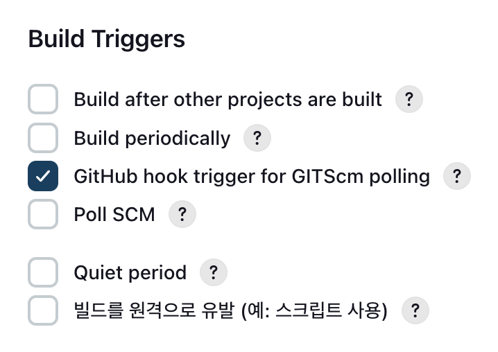jenkins 구성 -> GitHub hook trigger for GITScm polling 체크