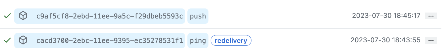 webhook을 설정하고 push 하면 아래와 같이 push 태그의 webhook을 보낸다.