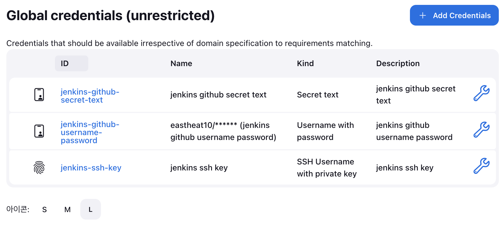 jenkins관리 -> credentials -> Stores scoped to Jenkins의 system 클릭 -> Global credentials -> add credentials