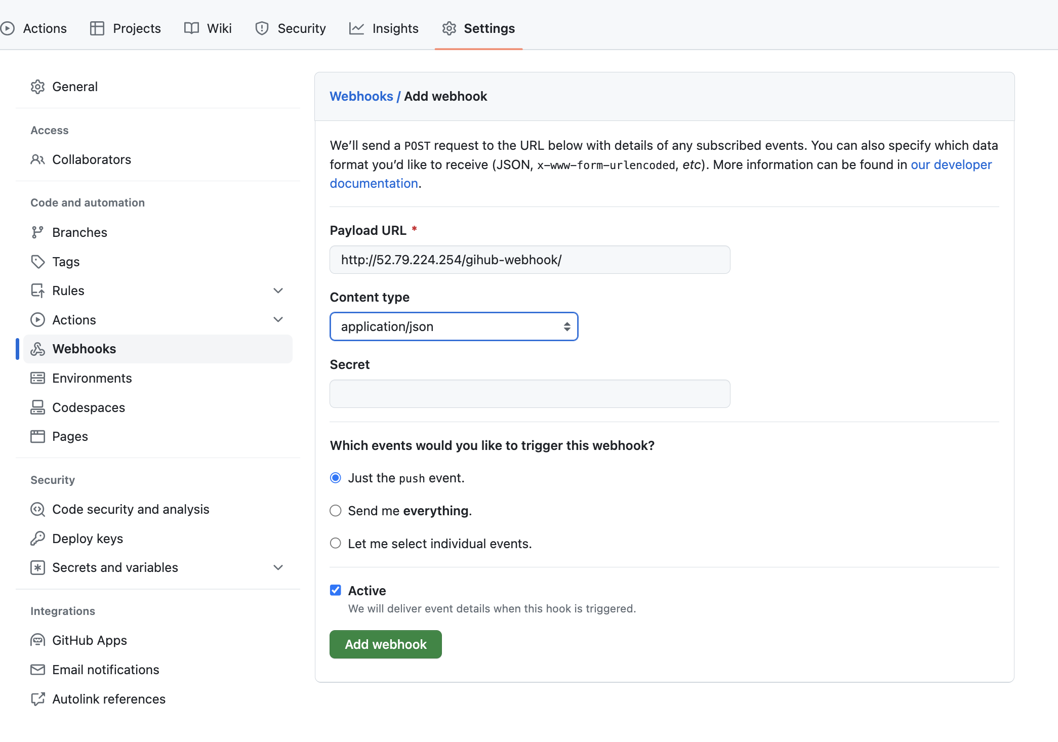 | HTTP | TCP | 80 | 사용자 지정 | 2a0a:a440::/29 | github-webhook-5 |